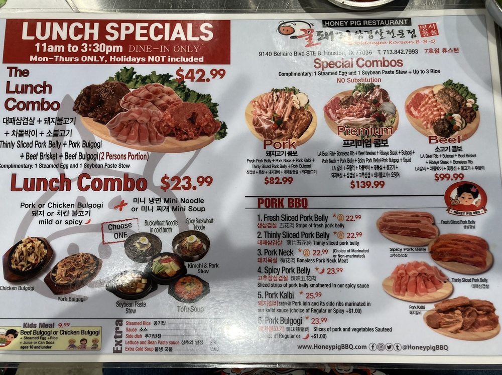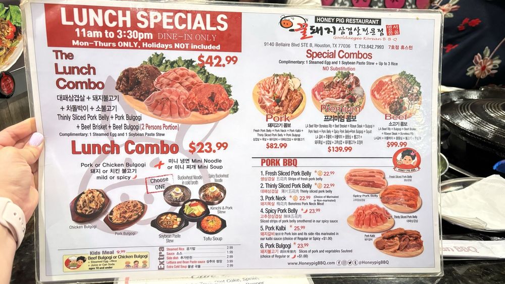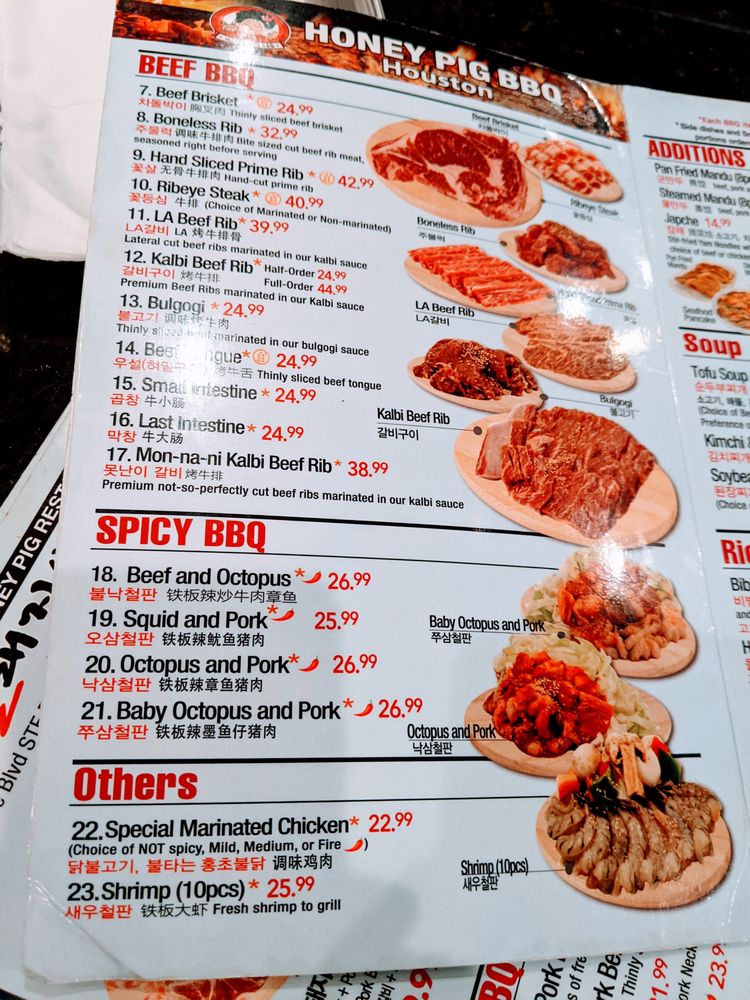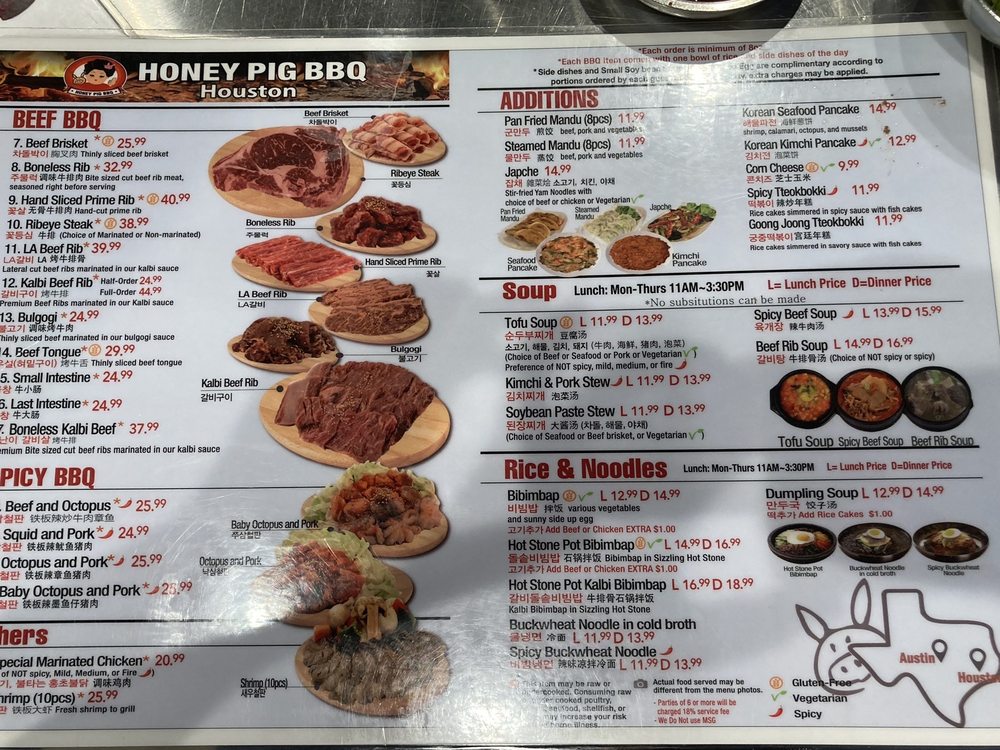 Welcome to Honey Pig BBQ, where the vibrant spirit of Korean barbecue comes alive in Houston. Located at 9140 Bellaire Blvd Ste B, this trendy spot offers a fantastic dining experience filled with delicious offerings and a lively atmosphere. The menu highlights a diverse array of dishes, including unforgettable boneless marinated galbi and spicy pork belly, ideal for sharing with friends. The tableside grilling service adds an interactive element, enhancing your meal with sizzling, mouth-watering flavors.
